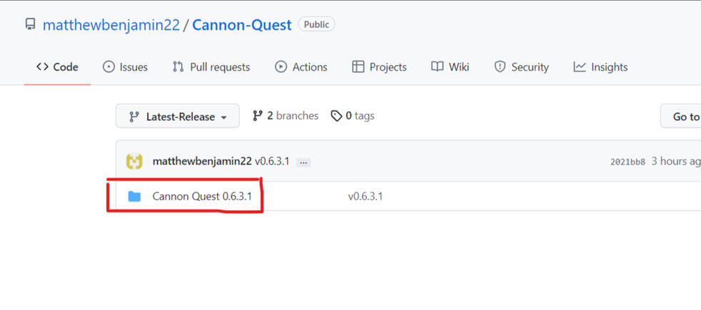 1. Visit https://github.com/matthewbenjamin22/Cannon-Quest