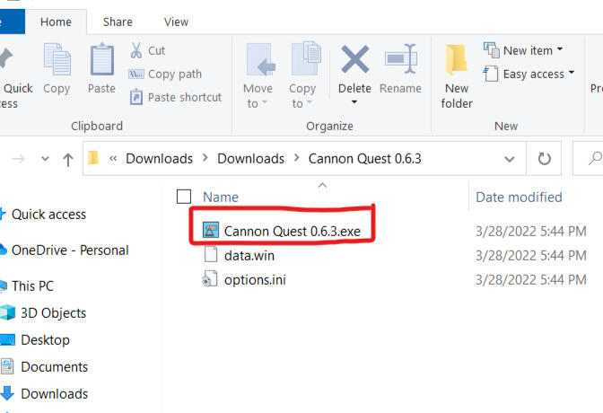 7. Installer users: Install Cannon Quest to your computer. Run Cannon Quest [version].exe
